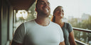 To visually slim your stomach, combine darker shirts or T-shirts