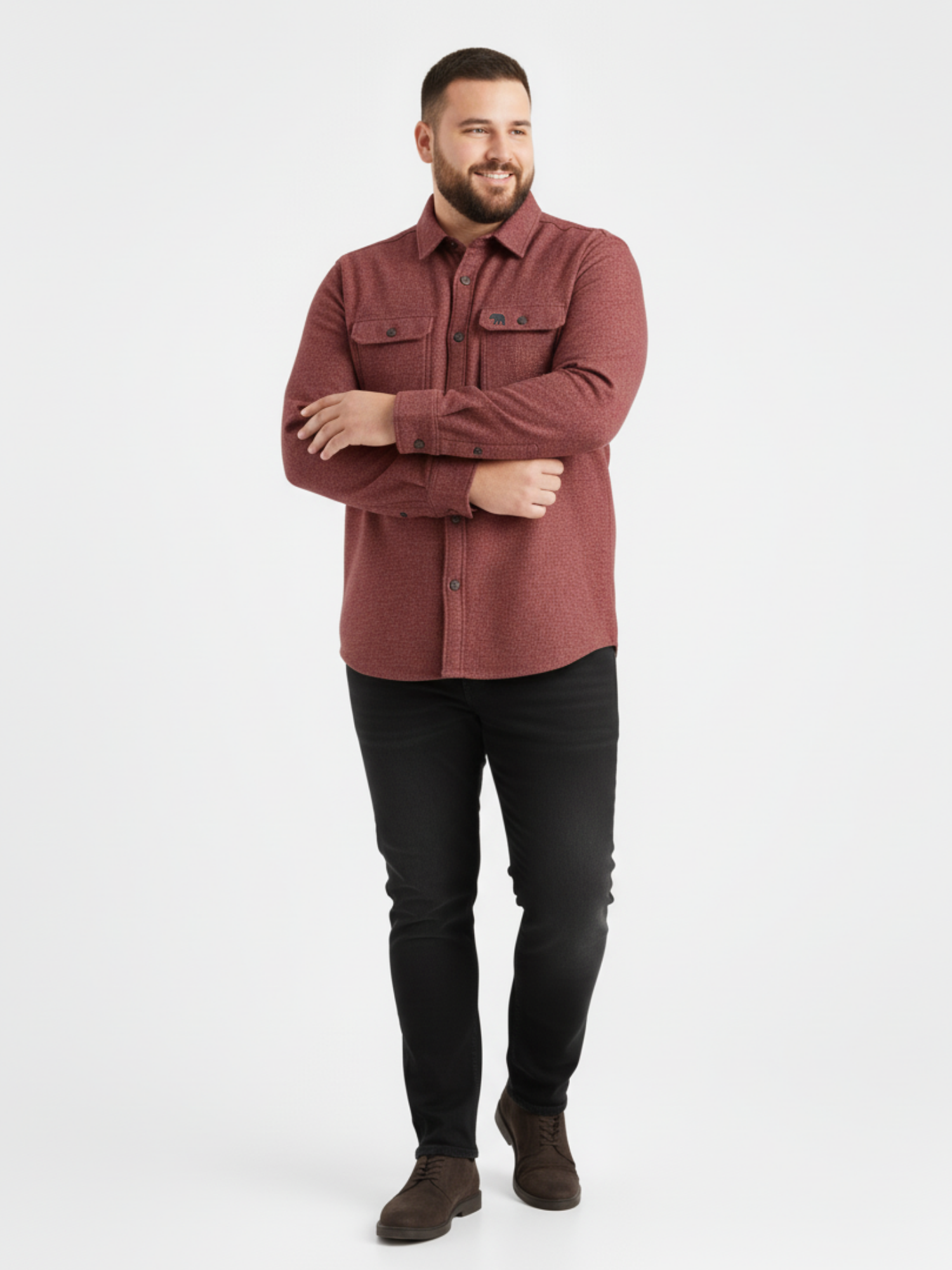 Duża męska bawełniana koszula casualowa z fakturą splotu TOBIAS D555 Ceglana