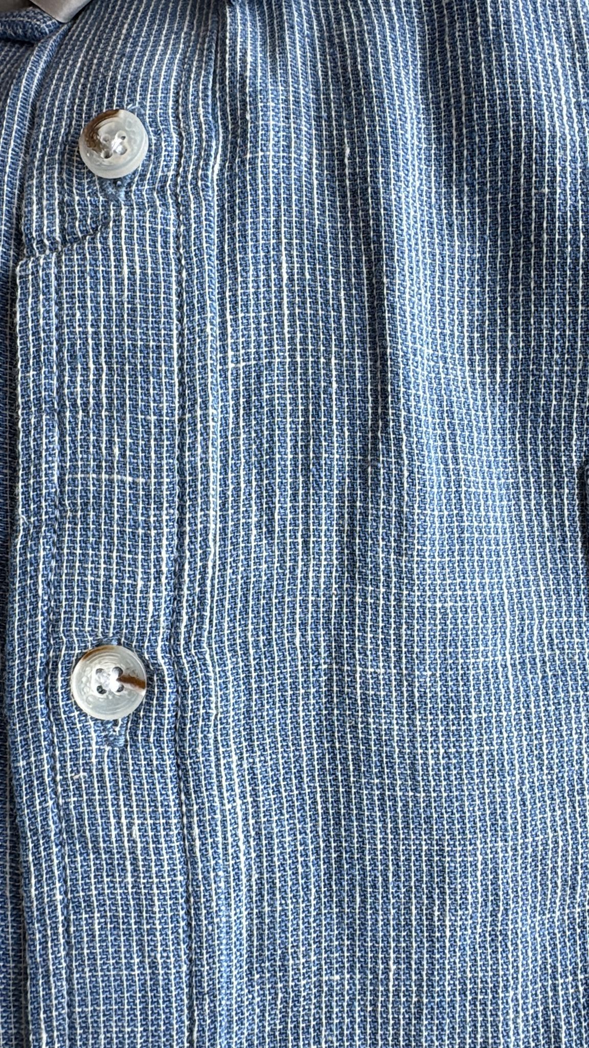 Duża męska koszula bawełniano lniana krótki rękaw FALMOUTH -D555 niebieska