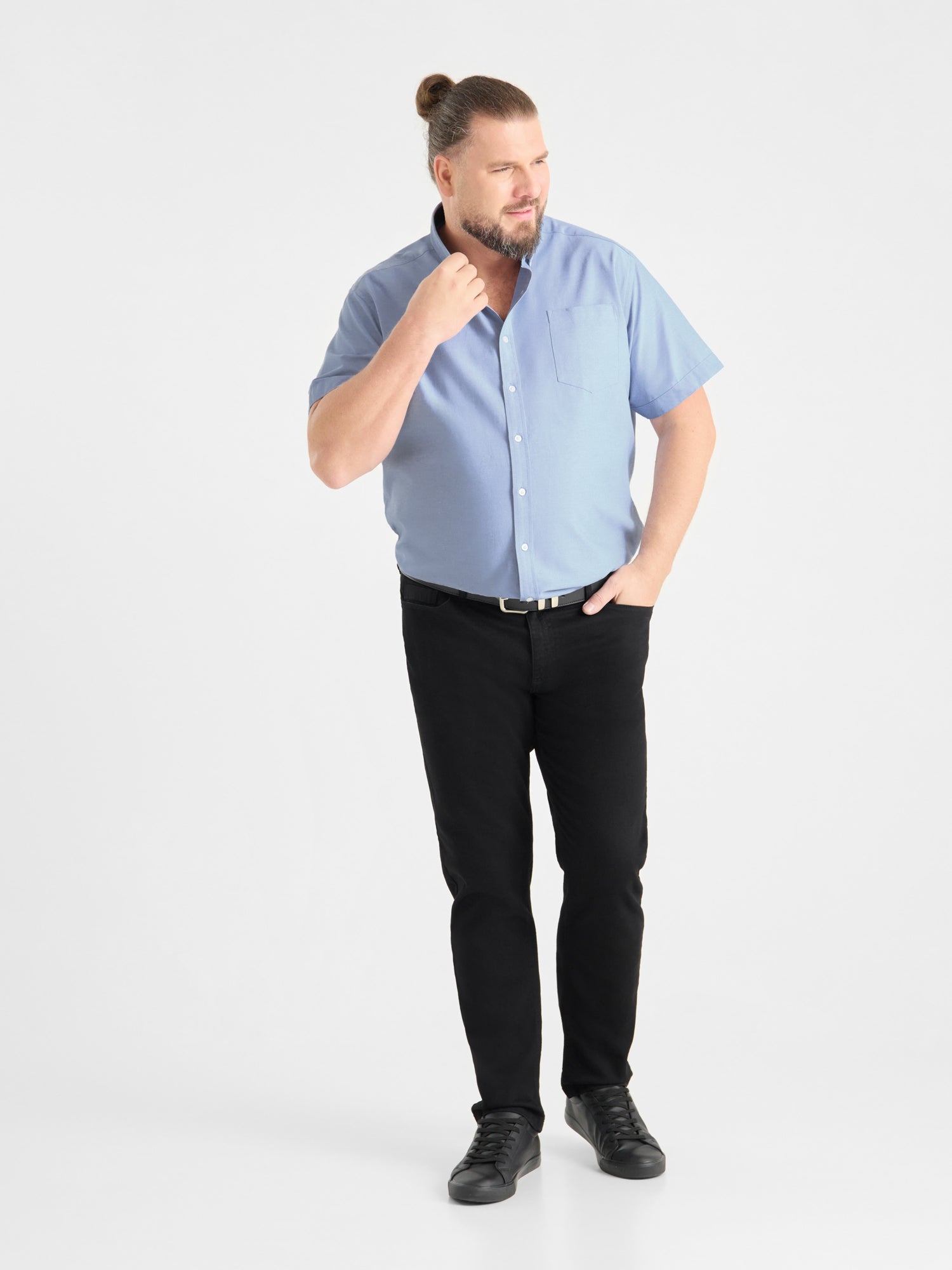 Duża męska koszula wizytowa krótki rękaw JAMES D555 Błękitna