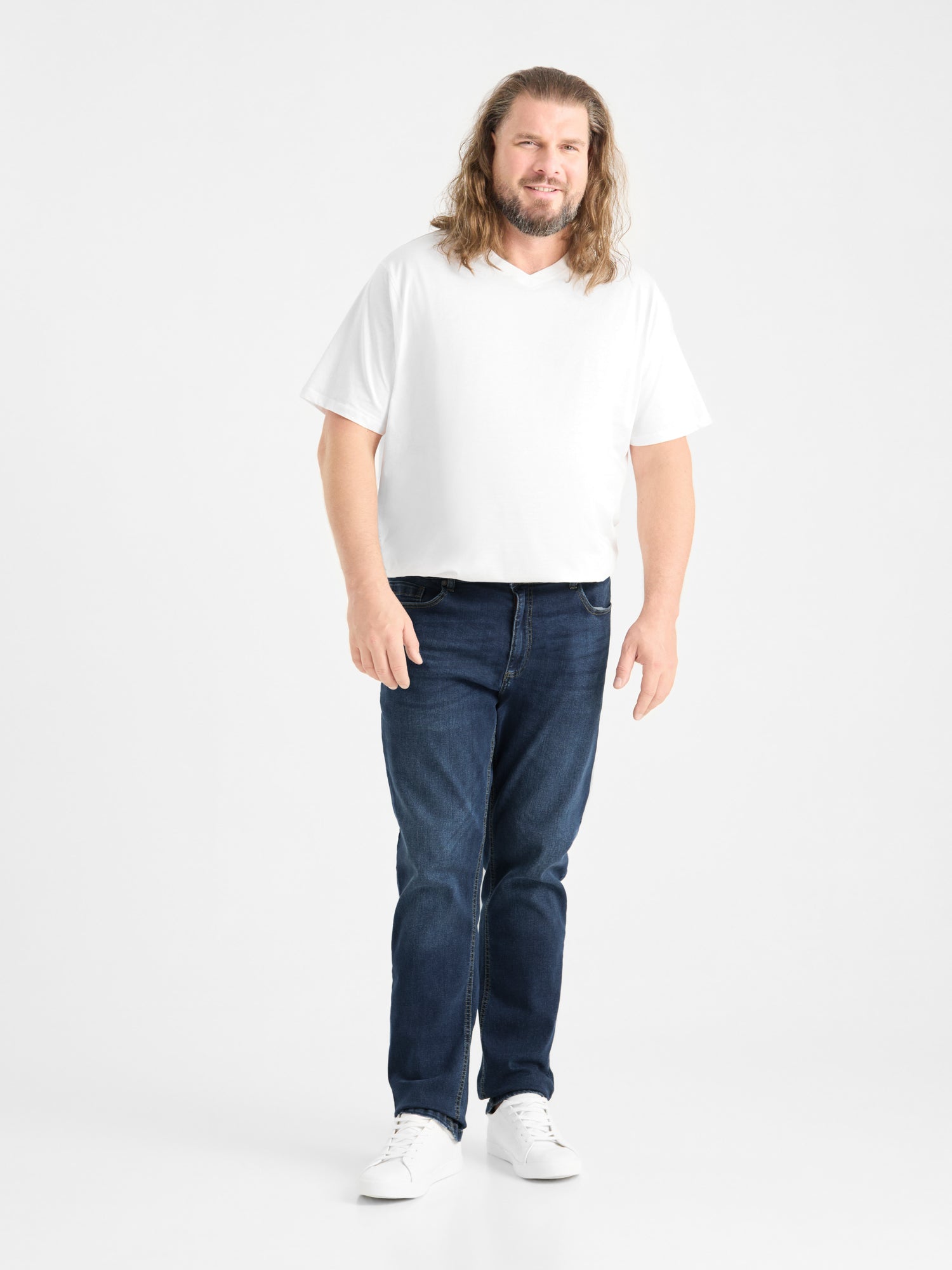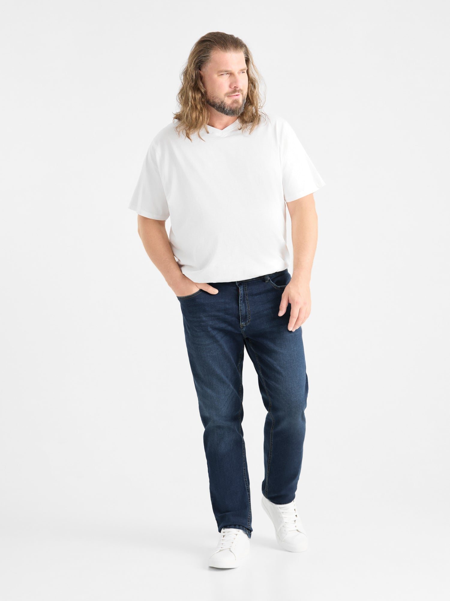 Duże jeansy męskie regular fit AMBROSE D555 Ciemnoniebieskie