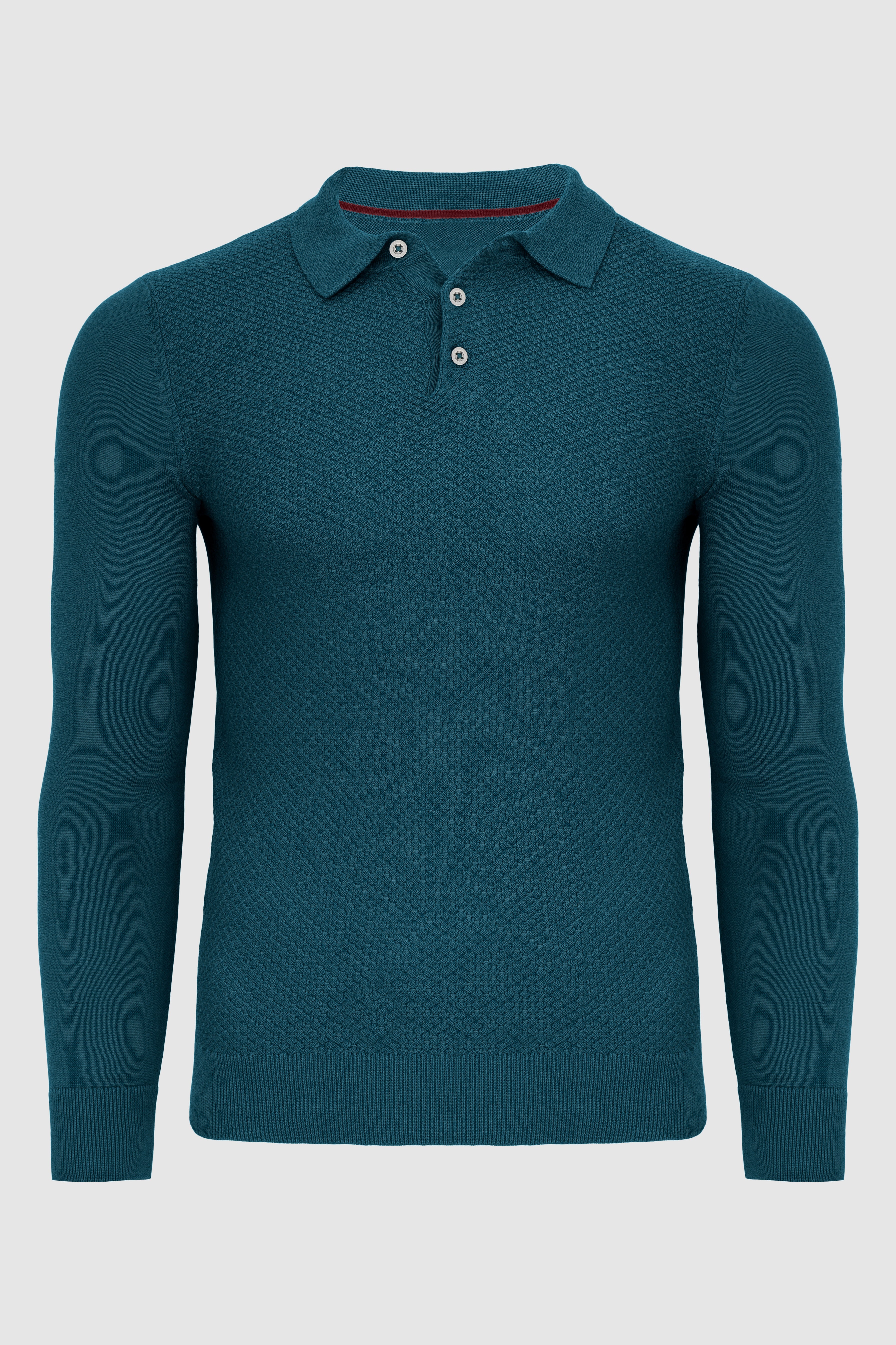 Duży męski sweter z kołnierzykiem zapinany na guziki typu polo A04 turkusowy