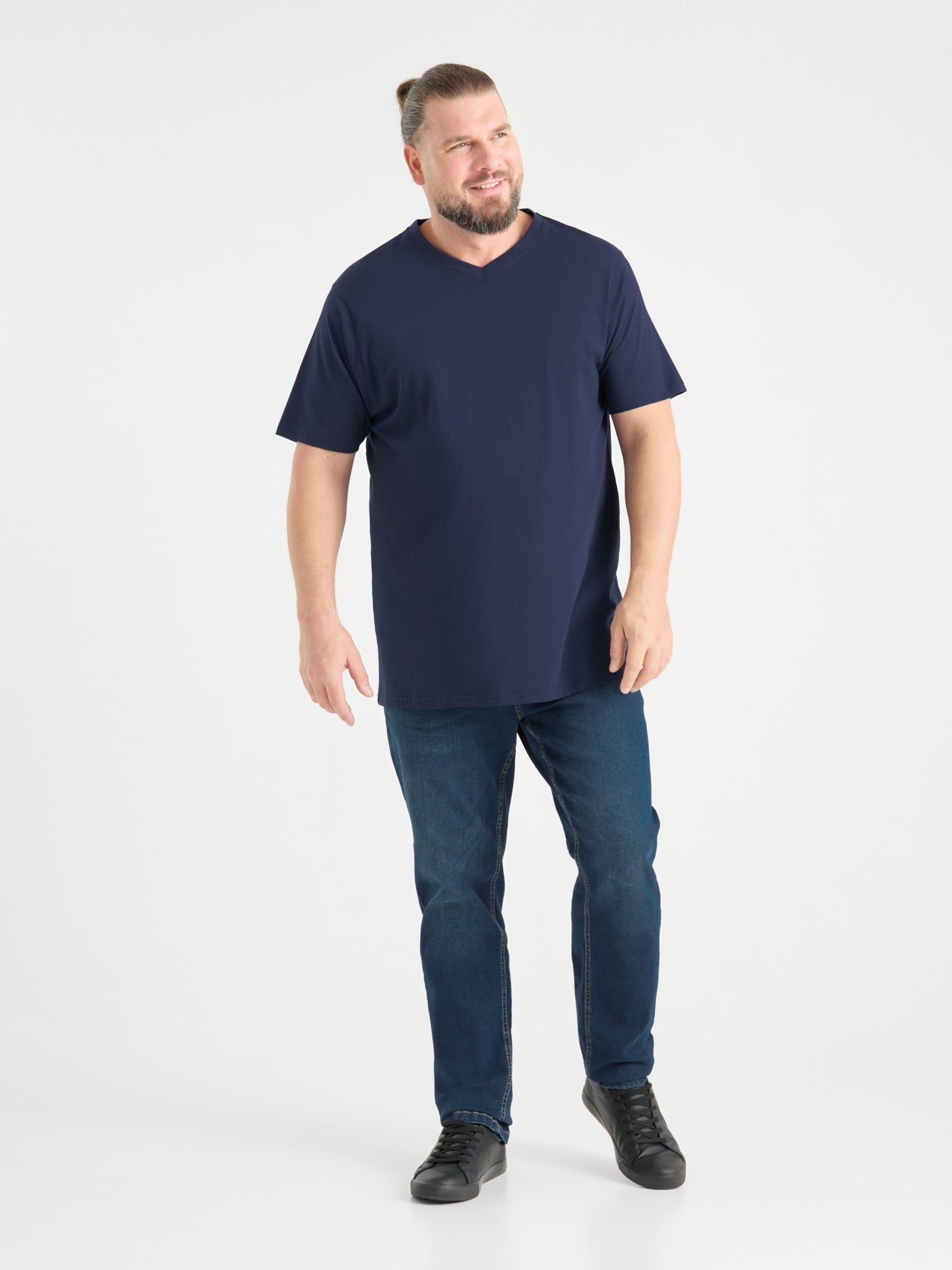 Duży męski T-shirt bawełniany V-neck SIGNATURE D555 Granatowy