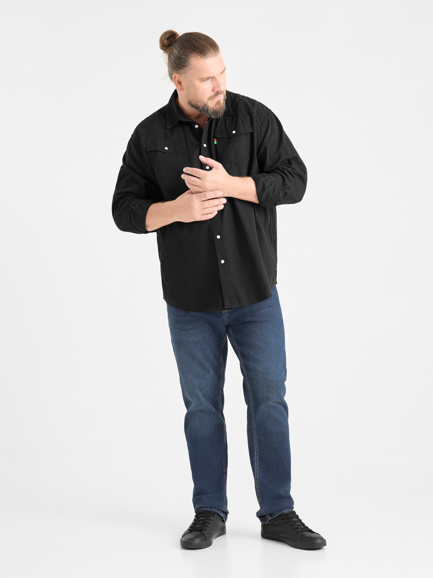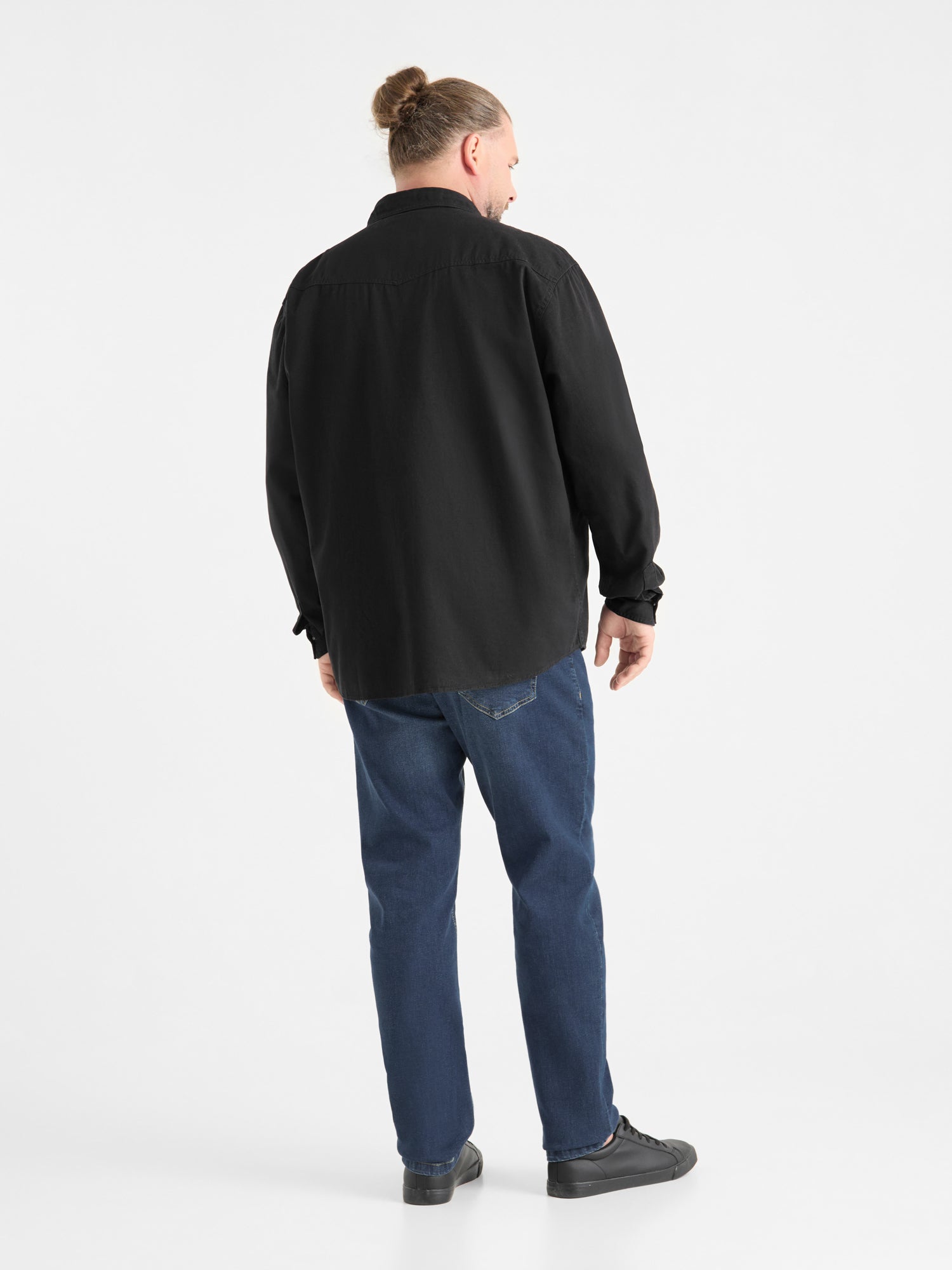 Zestaw duża męska koszula jeansowa WESTERN czarna i męskie jeansy regular fit AMBROSE ciemnoniebieskie
