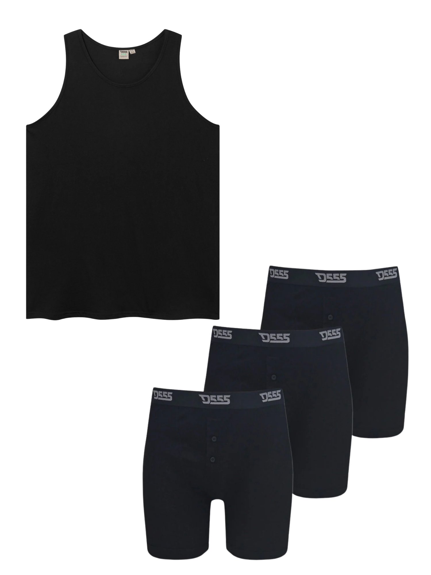 Zestaw duży męski podkoszulek FABIO D555 czarny i męskie bokserki 3-pak DRIVER 1 D555 czarne