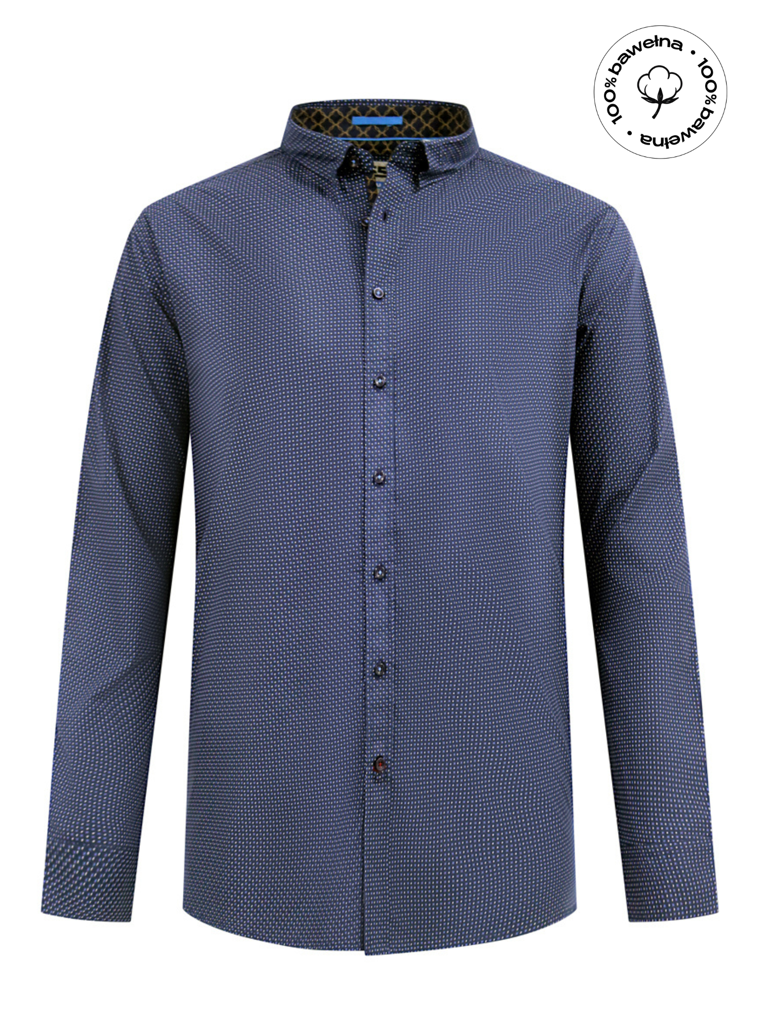 MIDDLESBROUGH D555 Men's Large Cotton Printed Shirt with Long Sleeves, Navy Blue