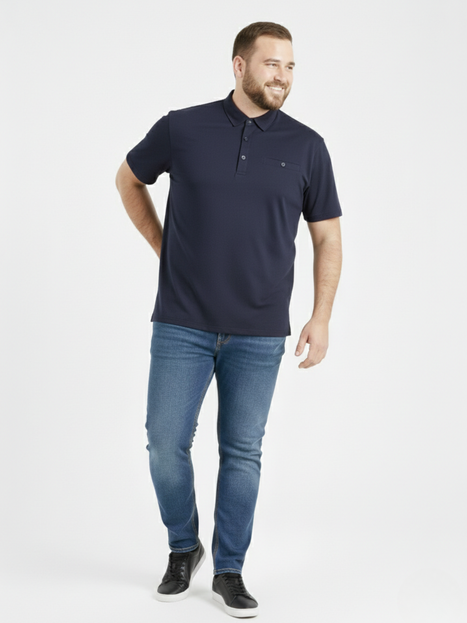 Large men's polo shirt GRANT cotton navy blue